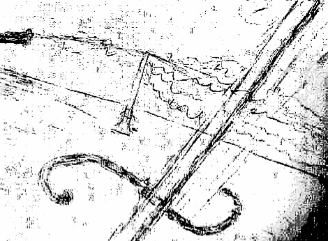 with his violin bow