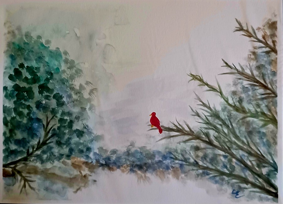 Scarlet Bird –LE – Watercolors on multimedia paper 9×12″