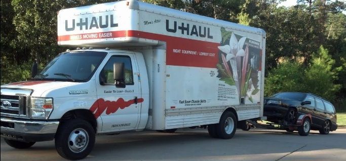 So, in mid-March, I rented a 30’ U-Haul and a car dolly. Dave, Josie, and her daugher’s boyfriend helped us load the truck. After the loading, we had a farewell dinner with our helpers. Then we slept, woke up early, and left by 6 AM, with our car pulled along behind us on the dolly. Che road in the truck cab with us and Ming (our rescue Siamese cat) rode in a large dog crate in the car’s back seat.