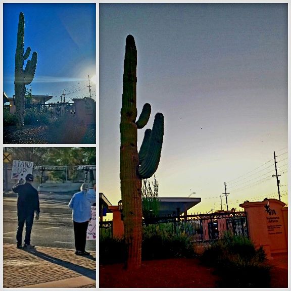 Our little group sported seven of us for this morning’s protest at the Ajo gate of the Tucson VA.