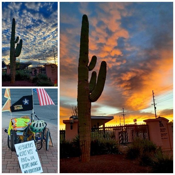5 of us walked the line for this morning’s Save Our VA protest. for the 7:00 AM shift change at the Ajo gate. There was also a bigger protest at the 6th Ave. gate, with about 20 people with signs surrounding that gate.