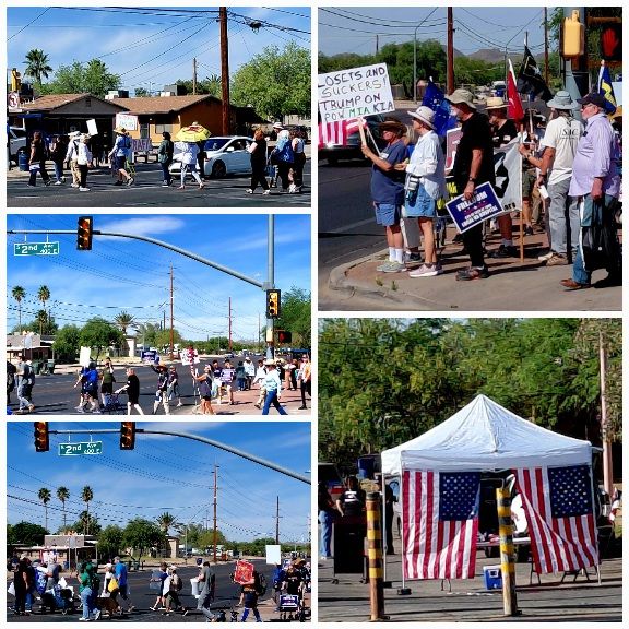 This was the one year anniversary of the Friday morning, Save Our VA Tucson protests. There was a rally right across the street from us that started around 9:30am, with a protest march of between 50 and 100 marchers, from the West, or 6th Ave gate to the Ajo gate and across the street to the anniversary rally. The rally promised a couple of political speakers, schmoozing, and some music. Since I have no tolerance for ‘politicos’ self-serving rambling and ranting, we left just after the rally started.