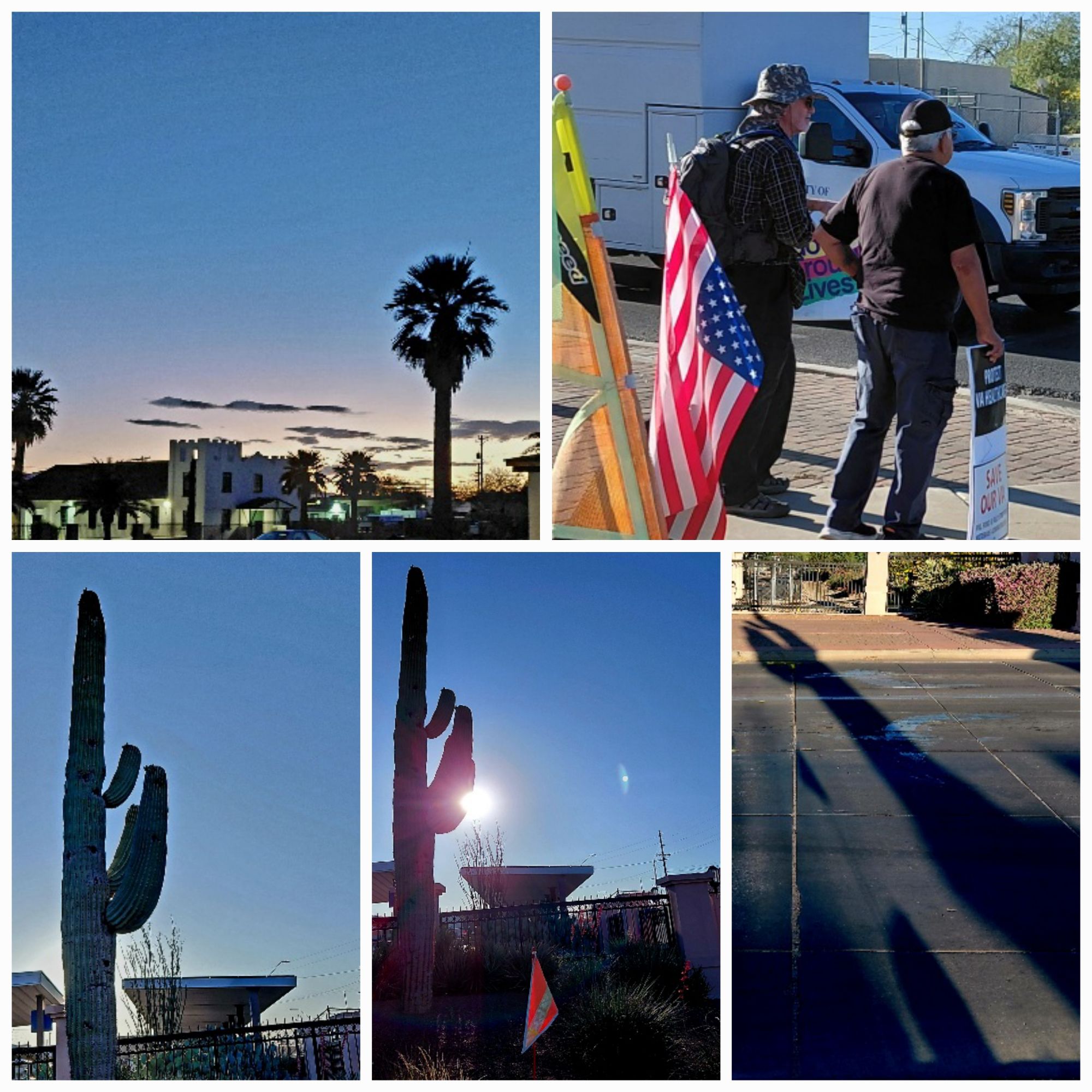 Four of us anchored the line at the Ajo gate of the Tucson VA this morning from 6:30-8:30am for the shift change.