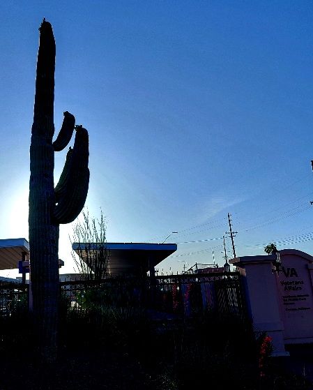 Three of us held the line at the Tucson VA’s Ajo gate from 6:30-8:00am for the morning shift change. The responses were similar to last week’s, 75%-85%, from what I could see… Some people’s car windows are tinted so dark it’s impossible to see the response or lack thereof through them, especially with the rising sun glaring off them…